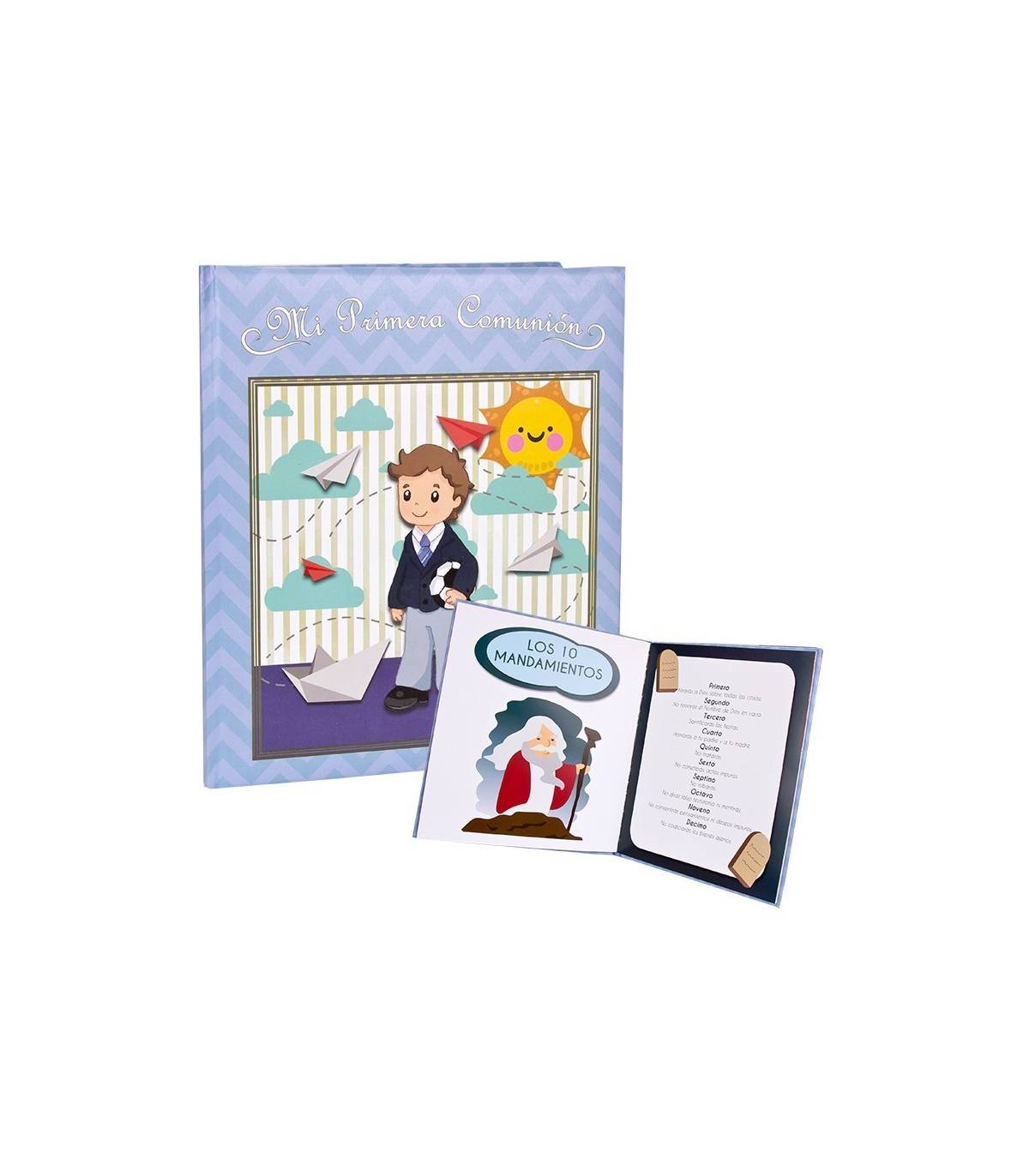 ÁLBUM COMUNIÓN-NIÑO MEDIDAS LIBRO: 29 X 21 CM MEDIAS CAJA: 31 X 23 CARACTERÍSTICAS: -20 páginas interiores de cartulina -Sección de Catequésis, Firmas y Fotos  -Cubierta exterior frontal y trasera de tapa dura -...